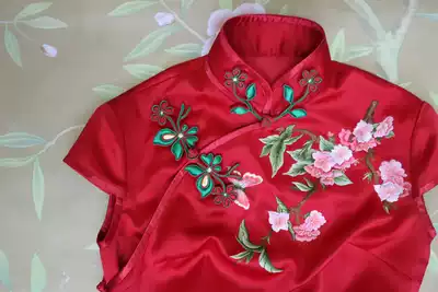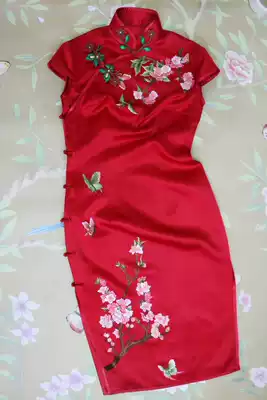 Original heavy silk embroidered handmade cheongsam Wedding dress cheongsam bridesmaid cheongsam dress