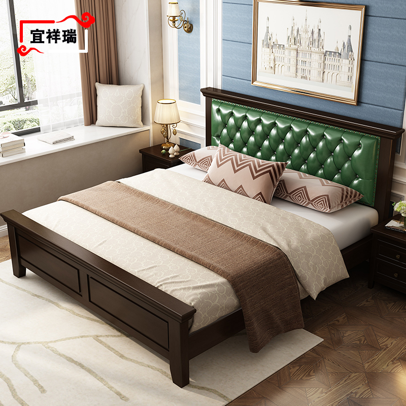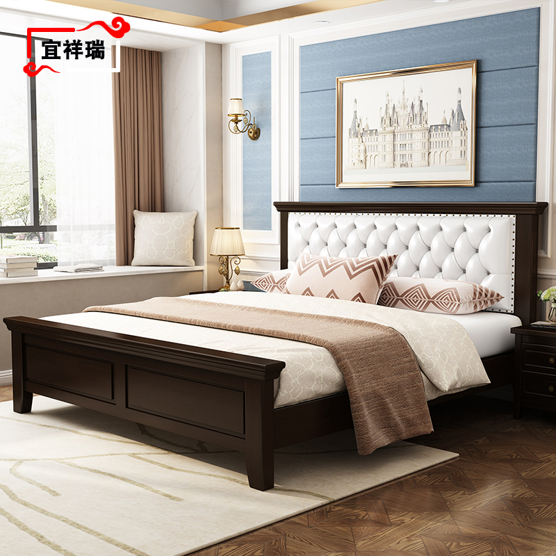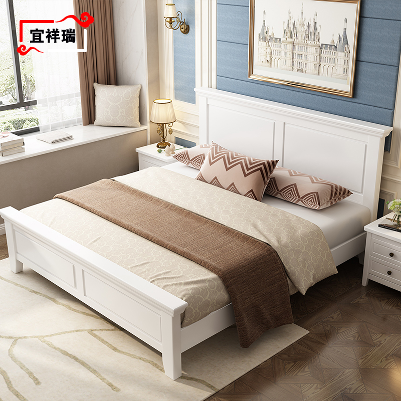 American solid wood bed Modern simple white master bedroom double wedding bed 1 5 1 8 meters soft bed Soft bag storage bed