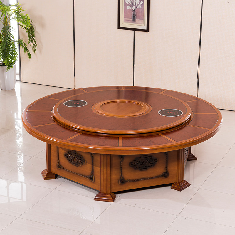 Hotel Electric Big Table Roundtable Hotel Commercial Electromagnetic Stove Rotary Table and Chair combination of 15 16 20 people