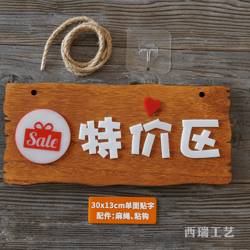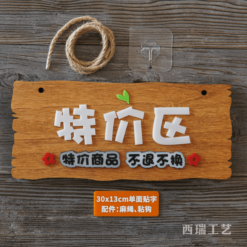 Solid Wood Individuality Women's Clothing Shop Special Price Area No Refund of Clear Barn Logo Mark Reminder Board CUSTOMIZE