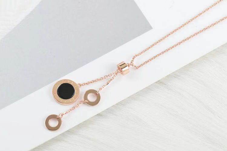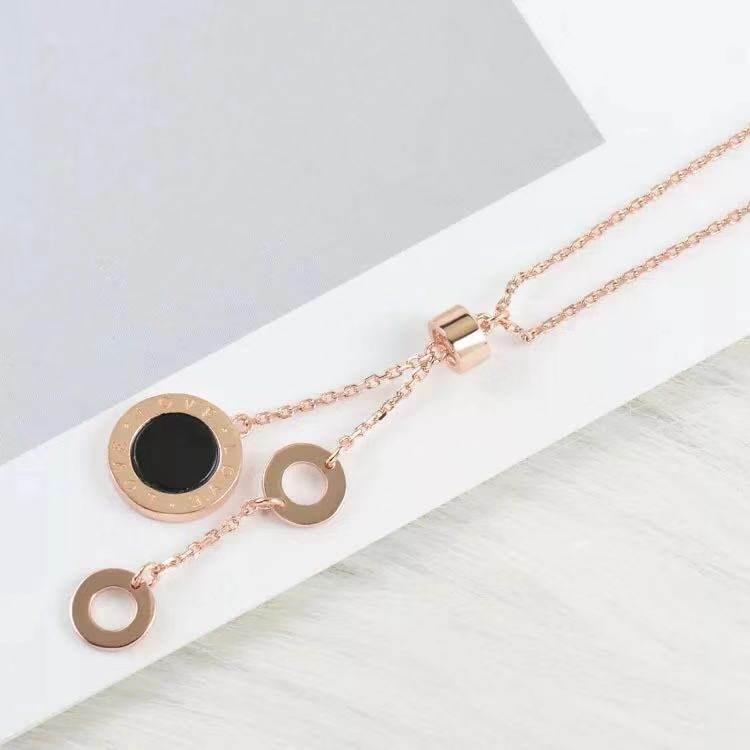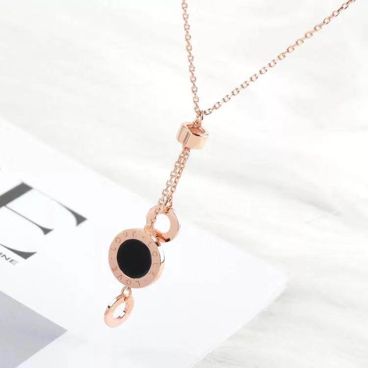 Colour Gold 18K Rose Gold Black Agate Round Necklace LOVE Lock Bone Chain Temperament 100 Ride To Girlfriend Bestie