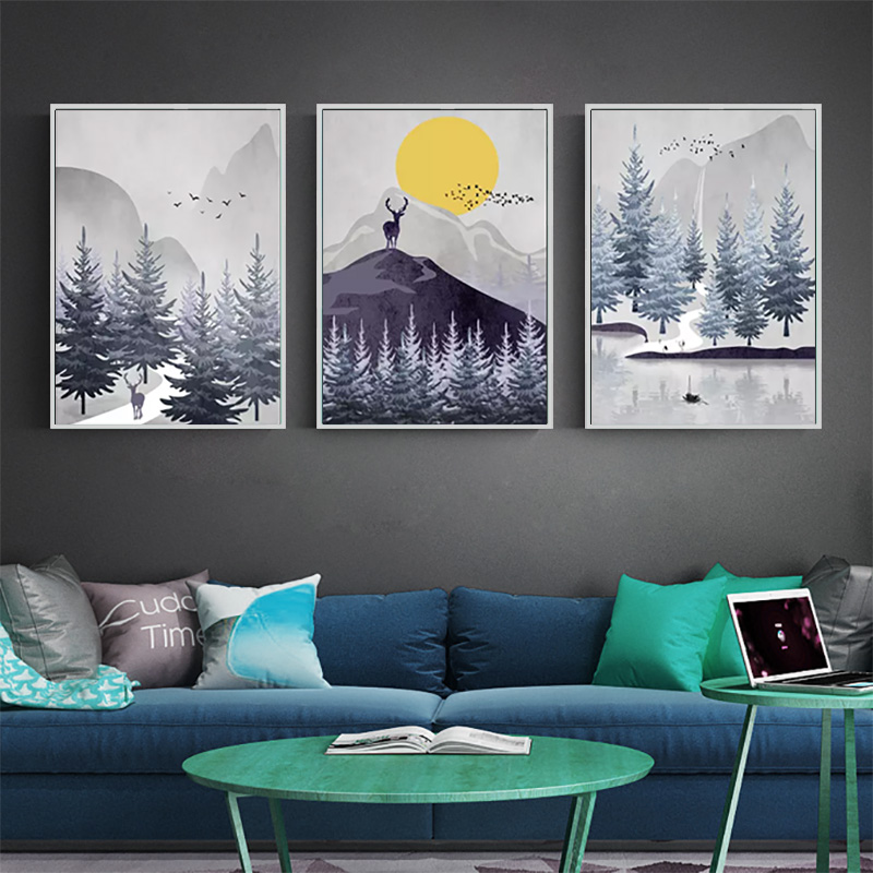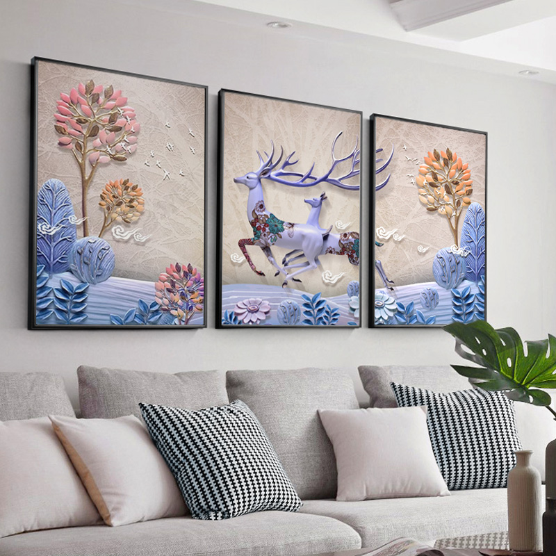 Sofa Background wall hanging painting New Chinese frescoed Living room Decorative Painting Dining Hall Wall Painting Modern Minimalist atmosphere Three Lianlian paintings