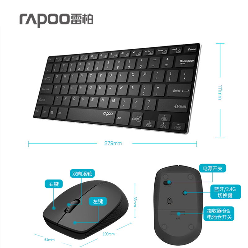 Rapoo 9000M wireless bluetooth keyboard mouse computer notebook mobile phone tablet MAC portable keyboard and mouse set