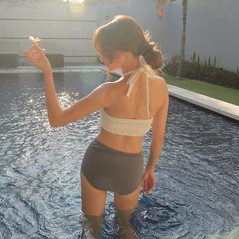 Japan and South Korea new split pure color swimsuit female bras gather fashion small fresh INS wind hot spring swimsuit