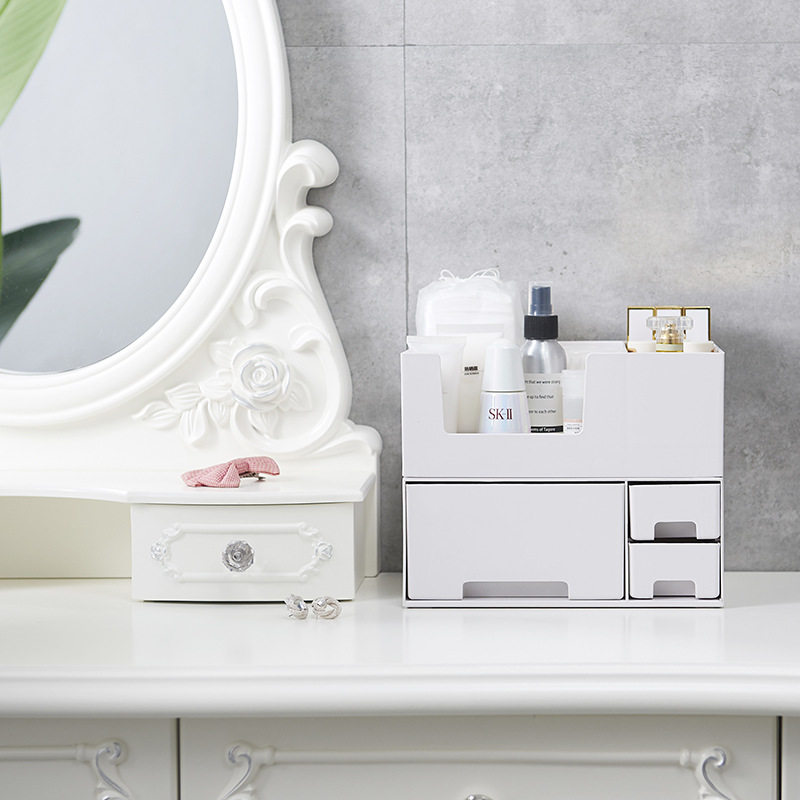 Double-layer drawer-type cosmetics containing box large size finishing skincare table makeup table plastic outlet red shelve