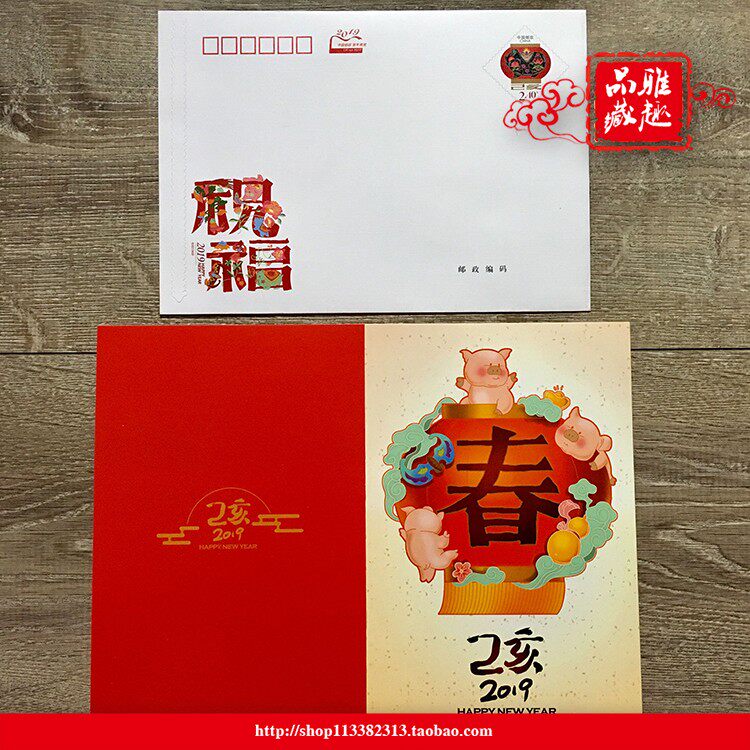 2019 Year of the Pig China Post National Edition New Year Award postcard Greeting card Daquan Puxin self-created Card (7 full)