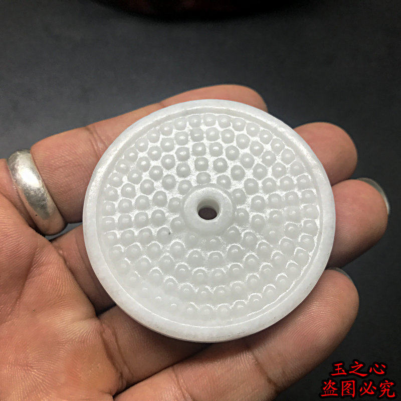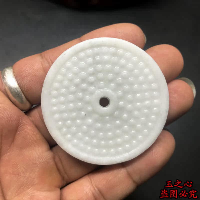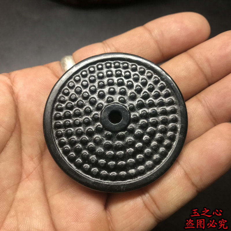 Lantian Jade ink jade double-sided carving antique jade Bi round jade ring DIY handmade Hanfu accessories accessories