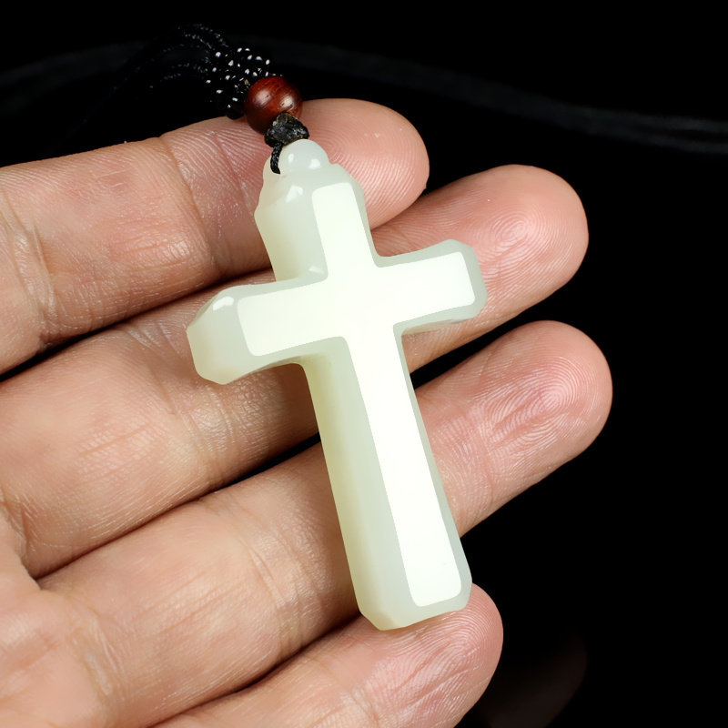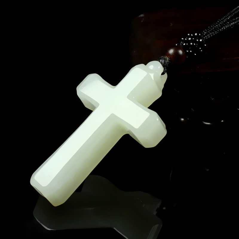 Natural genuine products and Tian Yuqing white jade crucifixion pendant male and female jade pendant jade necklace jade pendant jade wearing certificate