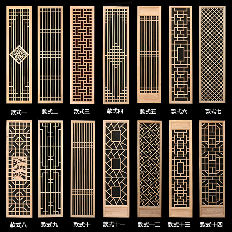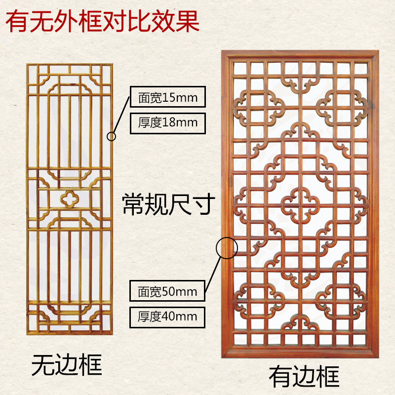 Dongyang wood carving solid wood flower grille New Chinese ceiling screen partition TV background hollow entrance Antique doors and windows