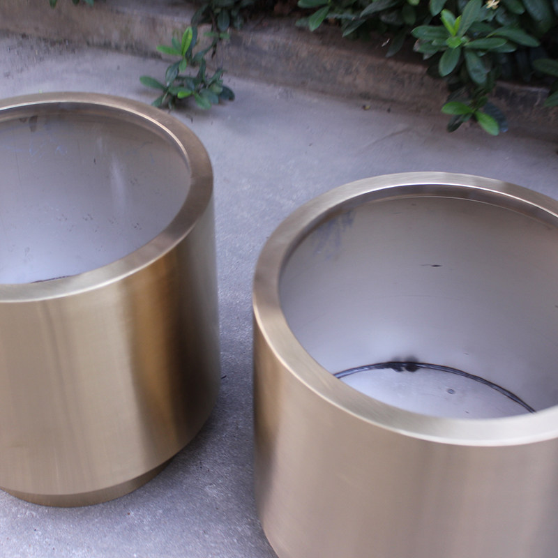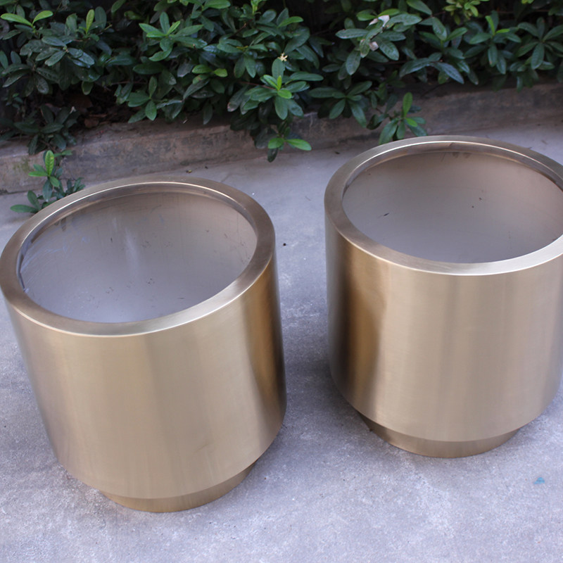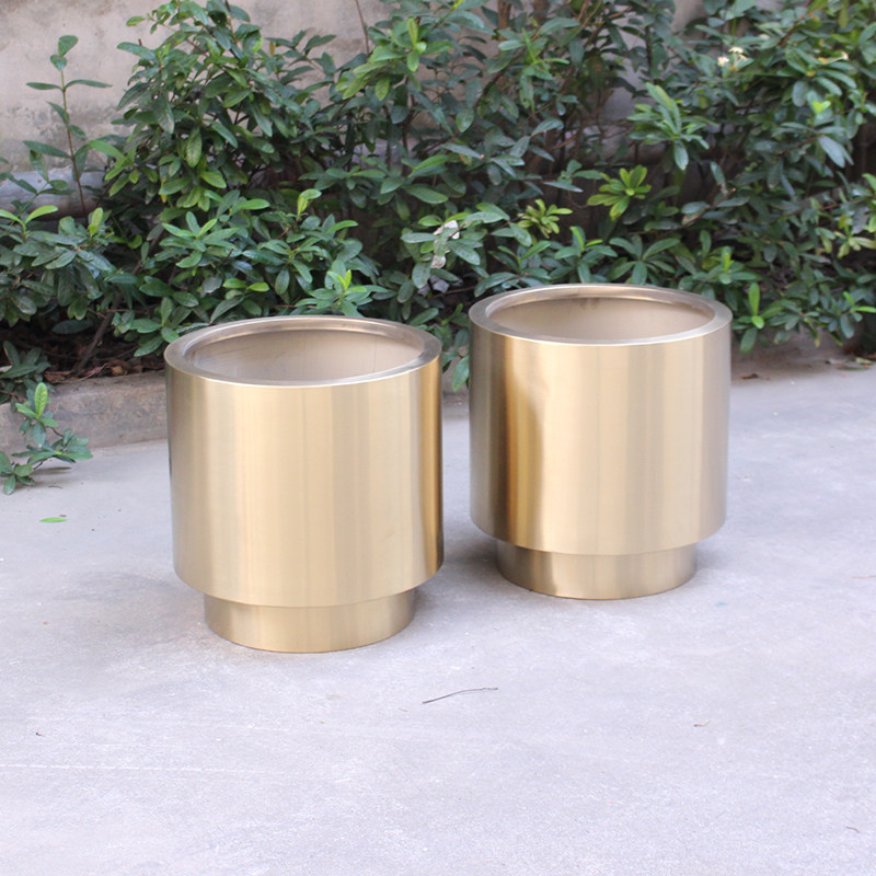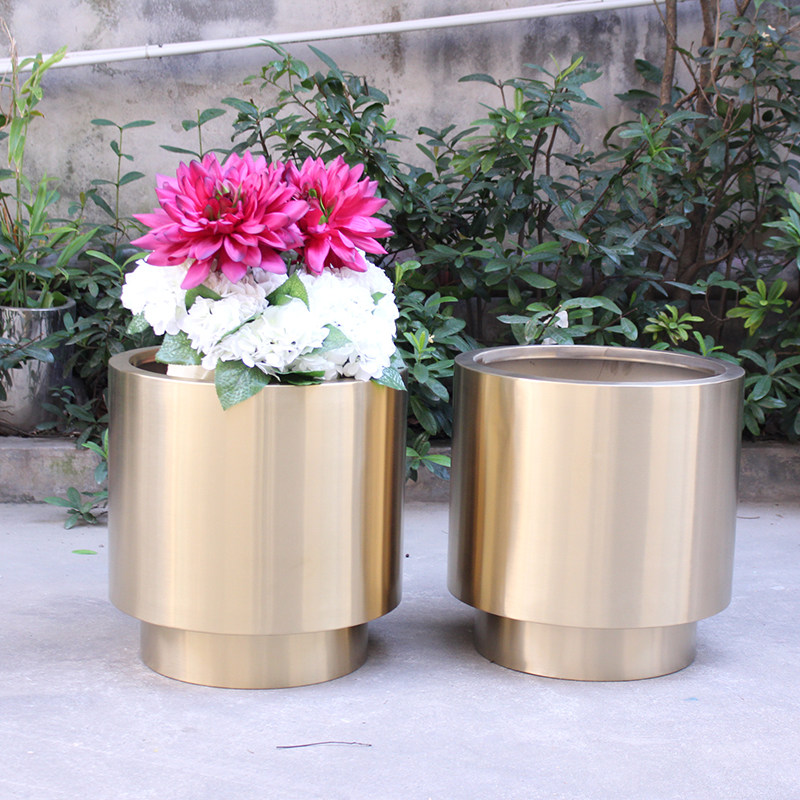 Round Stainless Steel Flower Bucket Cylindrical Flower Pot Gardening Set Pot Tree Pool Combined Flower Box Model Room Light Luxury