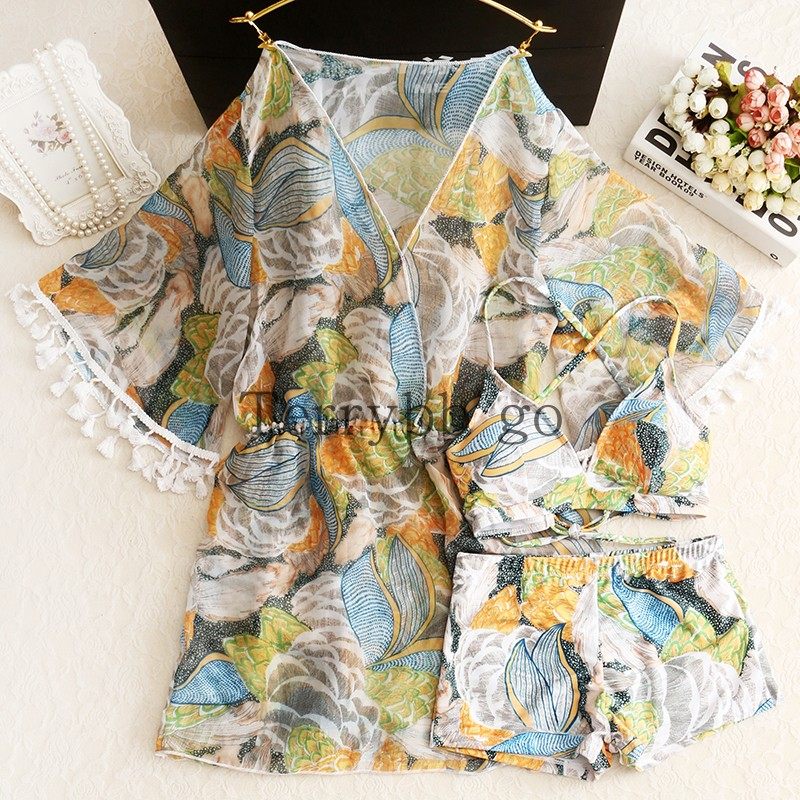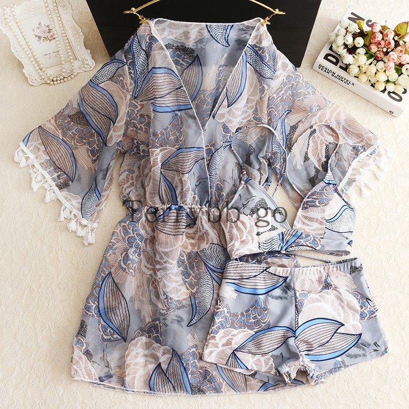 New fashion Korean bikini swimsuit women's three-piece set large size loose big chest two-piece hot spring swimsuit