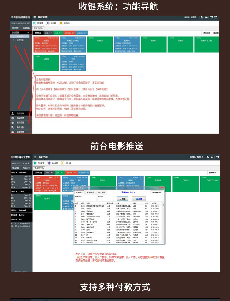 Online Red Private Cinema Design Decoration Cashier System Equipment Full Set Movie Café, on demand server