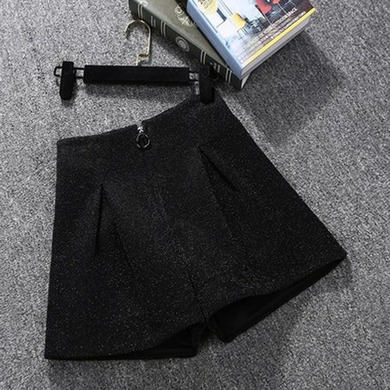 Hong Kong tide brand autumn and winter new wide-leg woolen shorts women's outer wear thickened all-match thin high-waist casual boots and pants