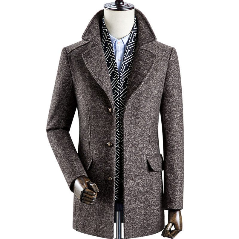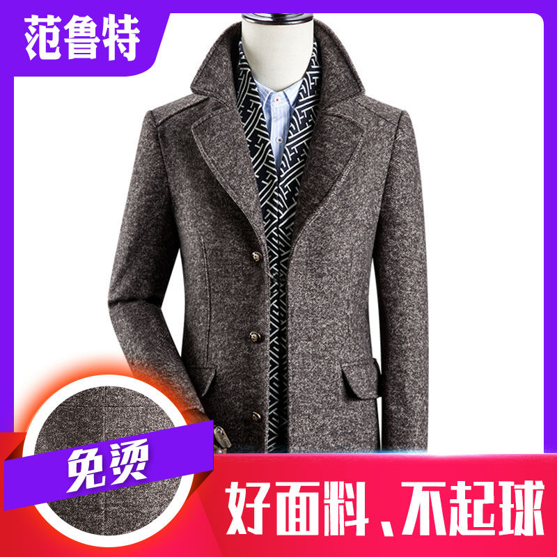Wool woolen coat men's woolen coat woolen jacket mid-length cashmere-free winter cotton thickened daddy girl