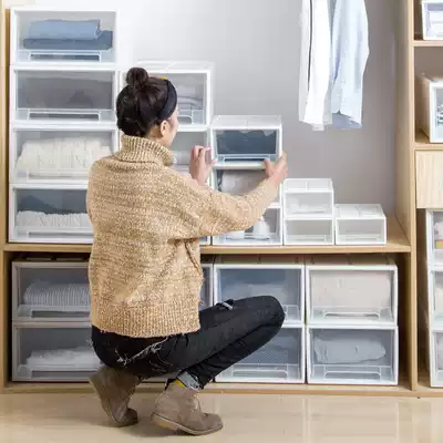 Transparent drawer storage box plastic clothes finishing box underwear storage box dormitory household wardrobe storage box