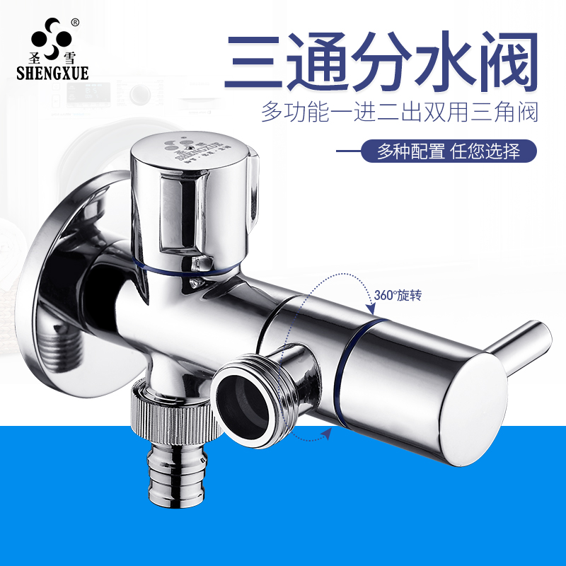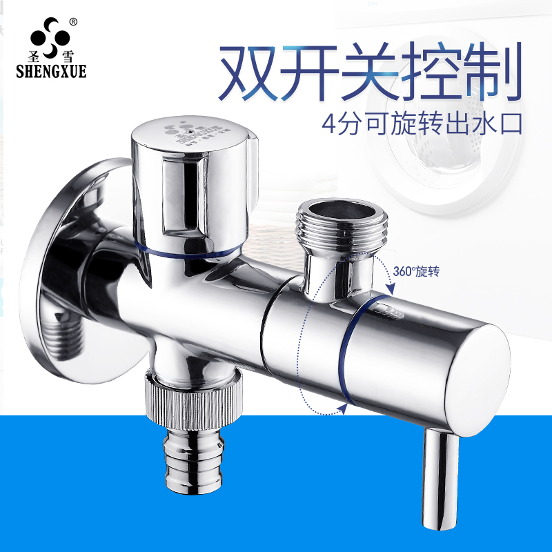 Rotate one-in-two triangle valve all copper washing machine tap double control three-way water divider