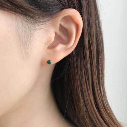 Japan Direct Take up 18k Gold Dark Green Malachite Joker Ear Needle