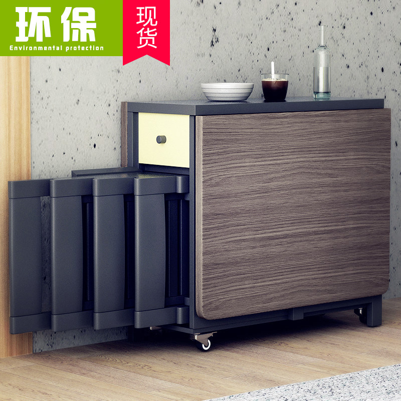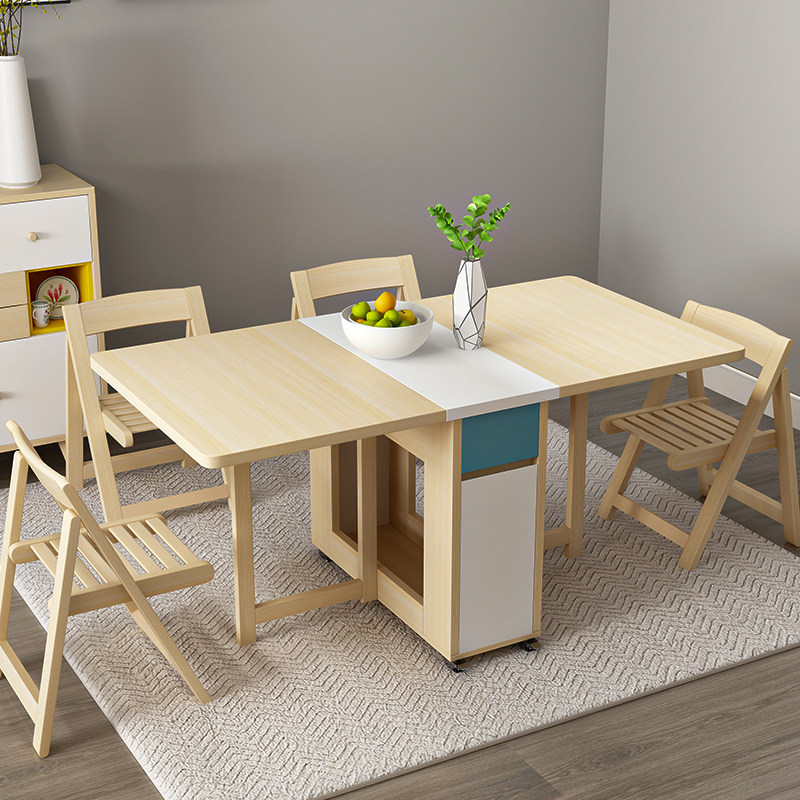 Folding dining table Household small household simple multi-functional solid wood dining table and chair combination Modern simple telescopic dining table