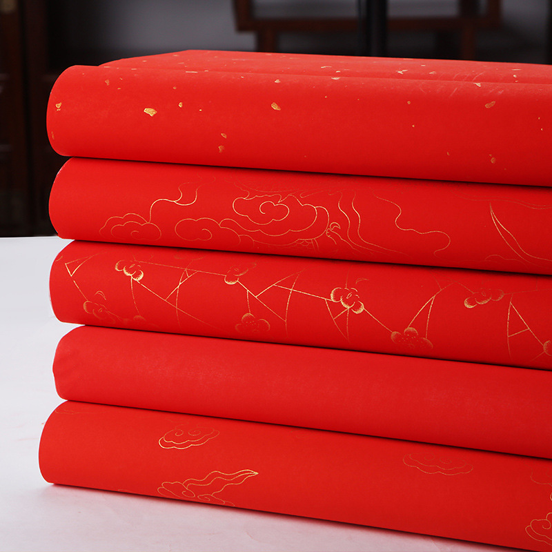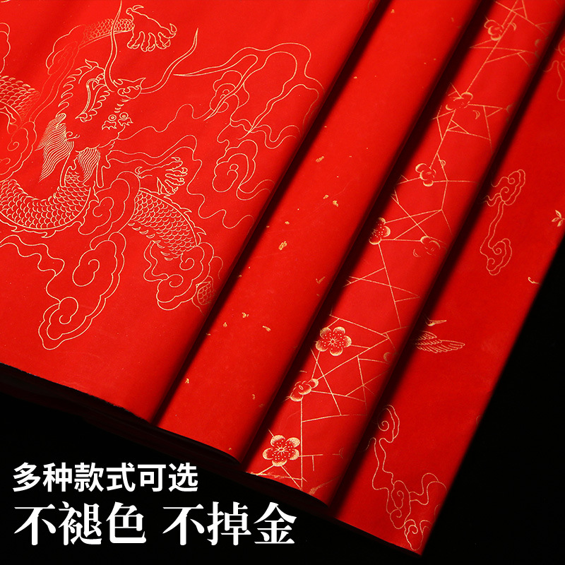Perpetual Red Couplets Red Paper Whole Large Zhang Thickened Four Feet Sprinkle Golden Dragon Phoenix Cut Paper Wedding Spring Couplets Great Red Half Raw Rice Paper