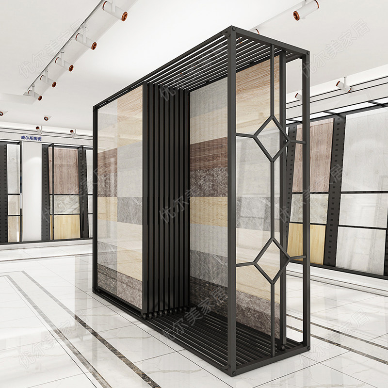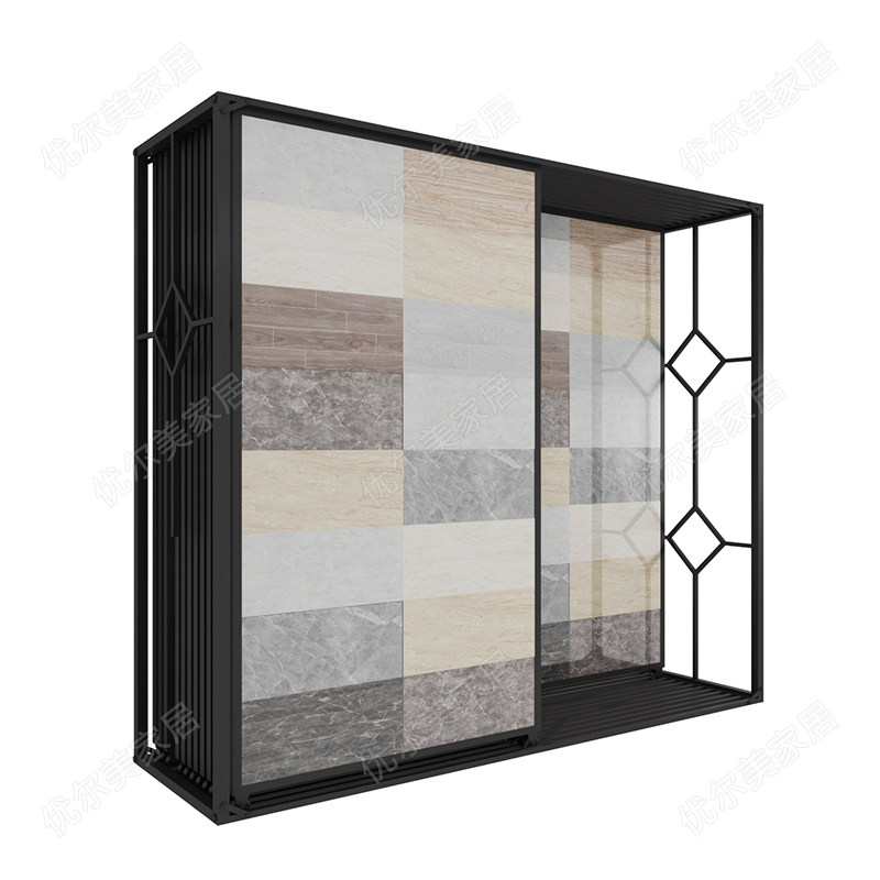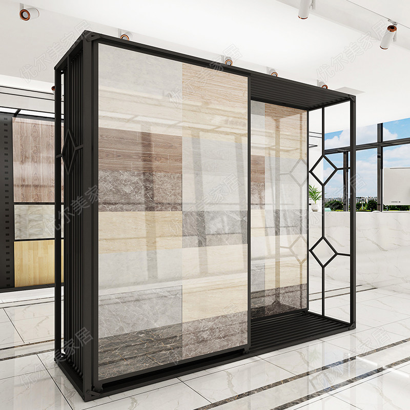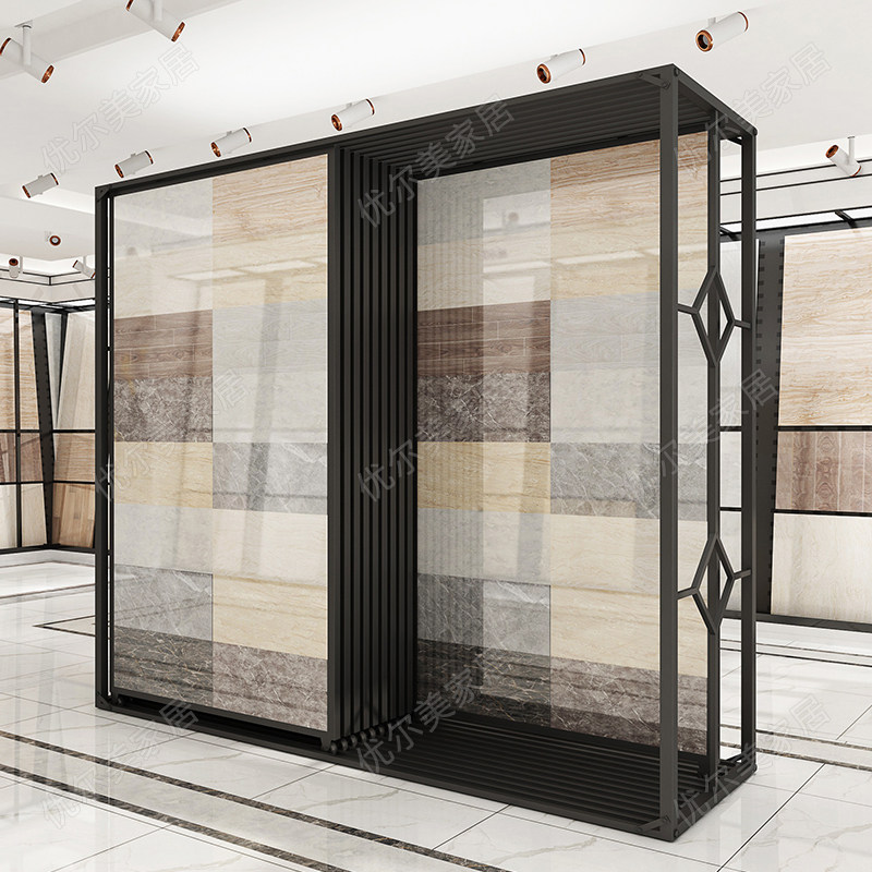 Tile showcase push-pull cabinet Tile rack display rack left and right flat push translation showcase wood floor display rack 300600