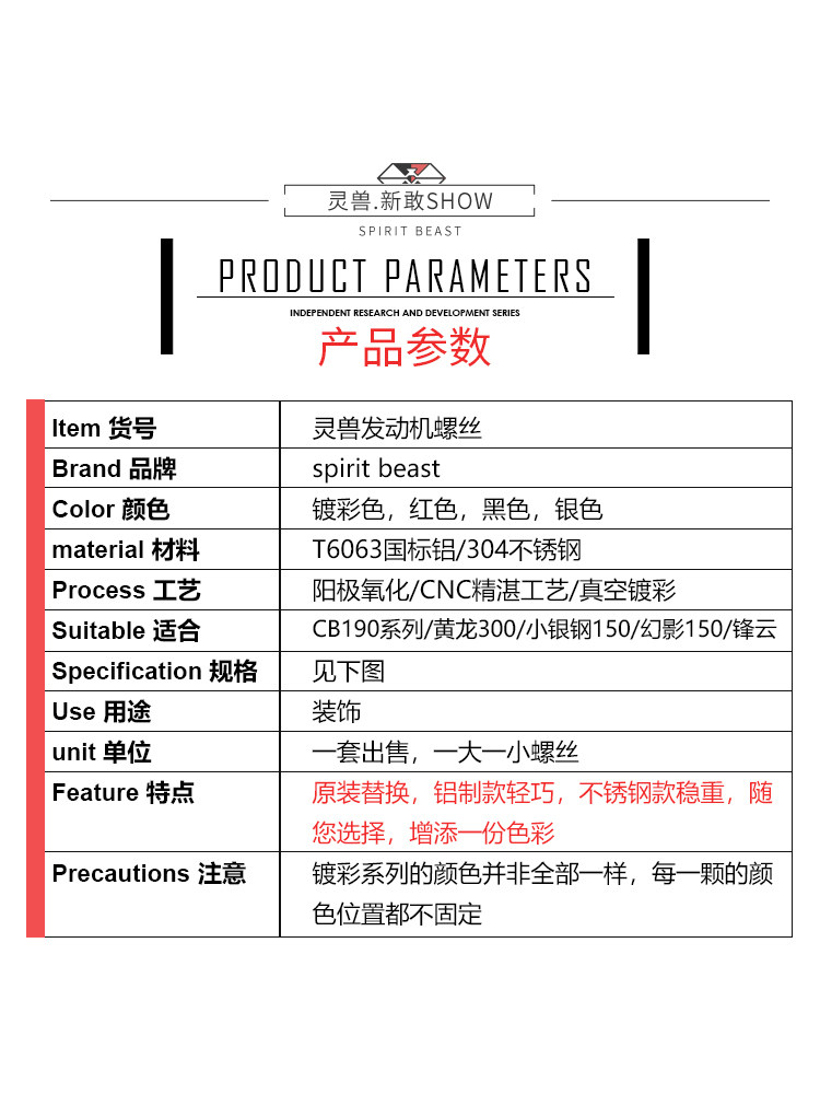 CB190 engine screw L1 red set CB190 engine screw L1 silver set CB190 engine screw L1 black set of lingon engine screw L2 plated with a set of beasts
