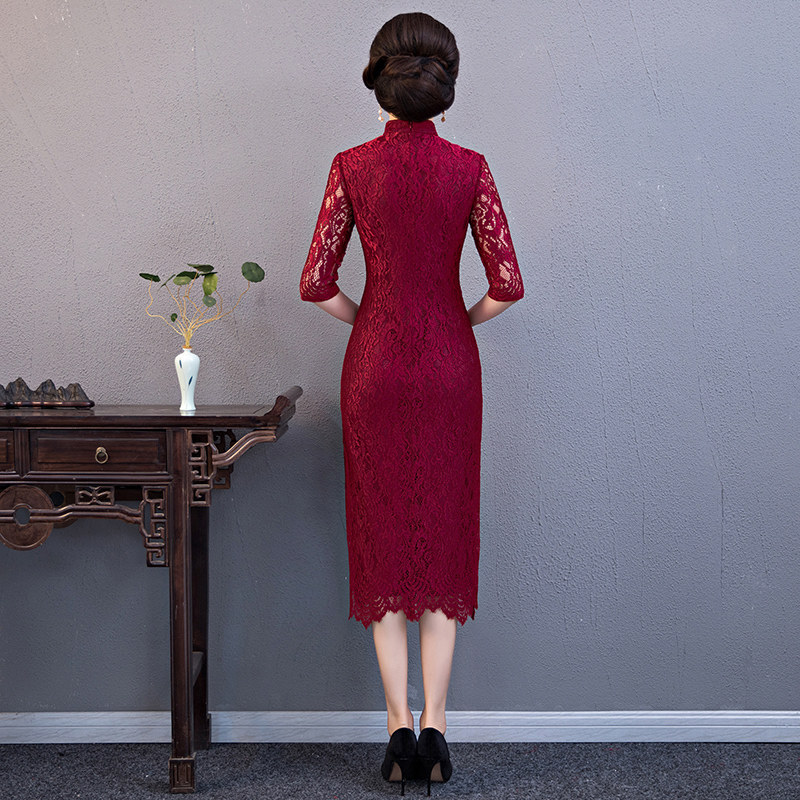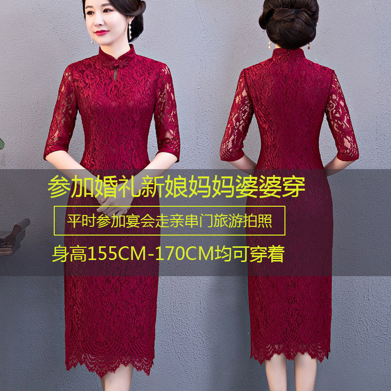 Hi Mother-in-law Cheongsam Dress Noble Lace 2021 New Mom Dress Wedding Wedding Plus Size Women Autumn Dress