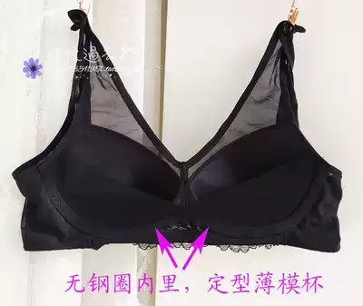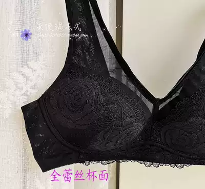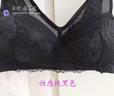 Thin no steel ring underwear women's side receiving milk back bra does not fall shoulder strap bra lace rose sexy pure black
