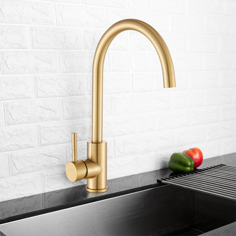 Household bathroom kitchen faucet brushed gold brass rose gold countertop washbasin full copper hot and cold water mixing valve - Taobao