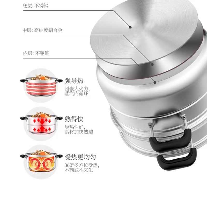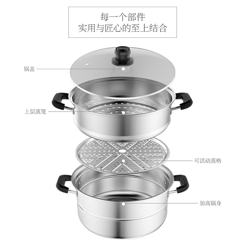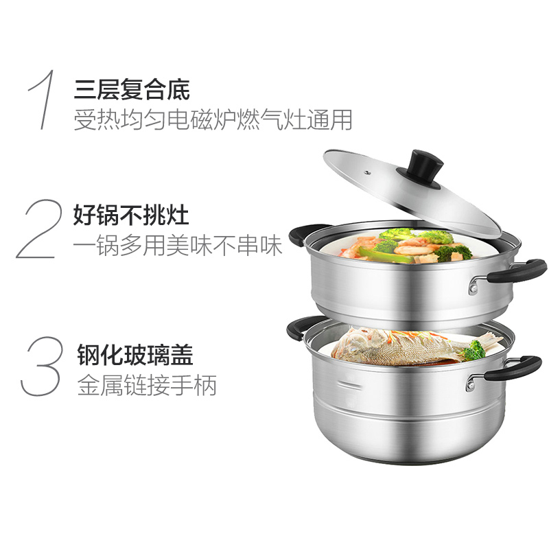 Midea steamer 26cm steamer stainless steel 2 layer household steamer grate steamer induction cooker universal double layer steamer