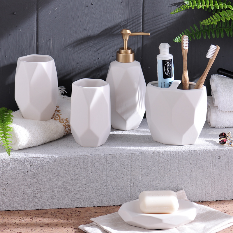 Modern simple household powder room ceramic washing set Bathroom five-piece set Creative brushing cup mouthwash cup set