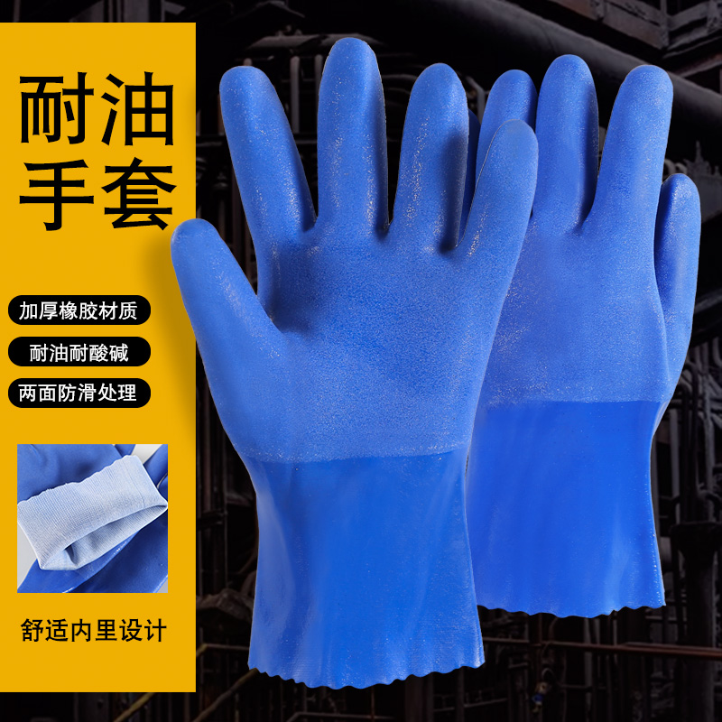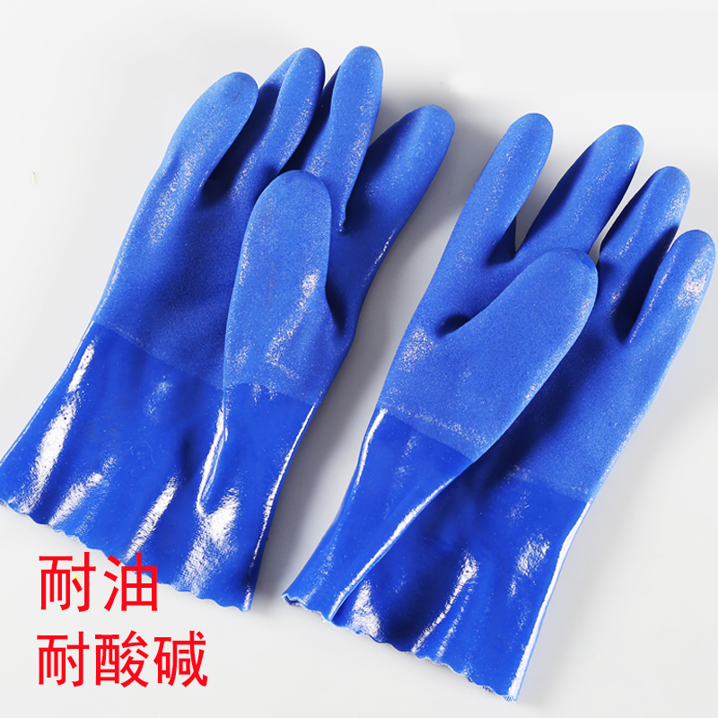 Oil resistant and acid-resistant, waterproof industrial gloves thickened cotton wool-soaked plastic gloves rubber attached to hand protection gloves