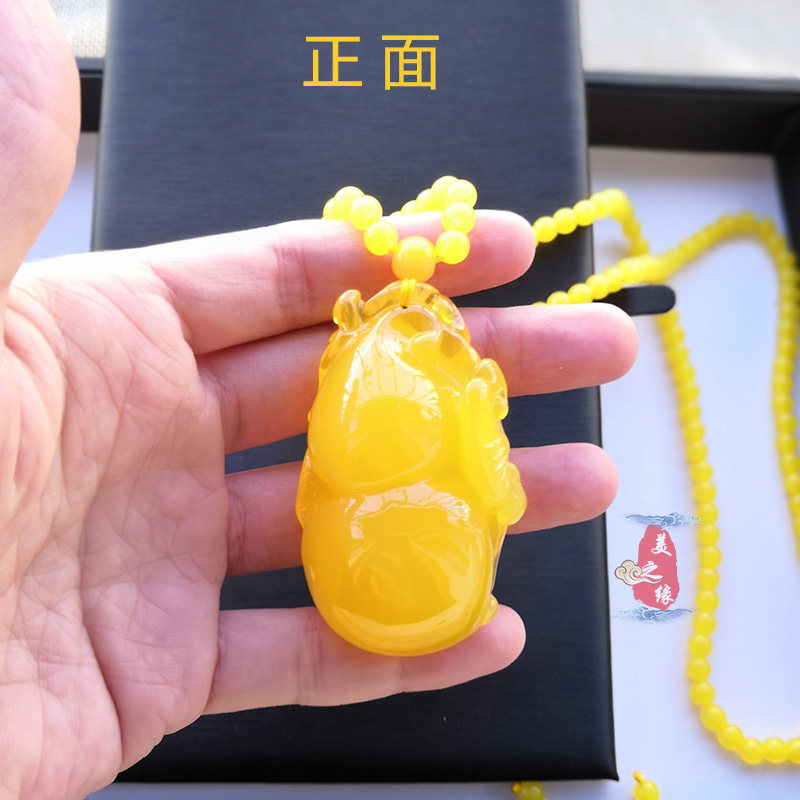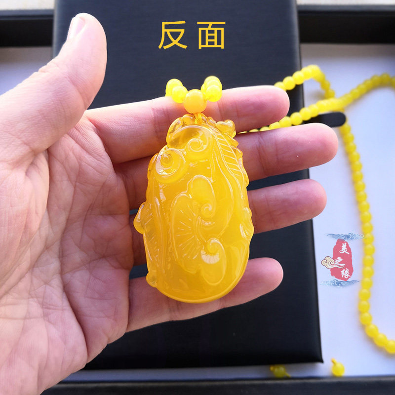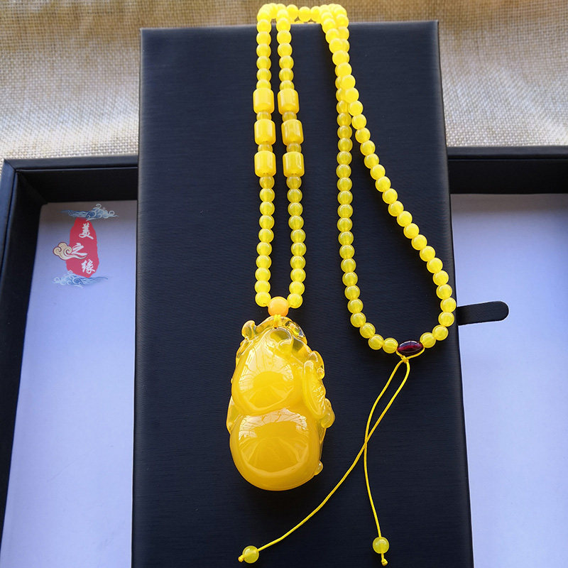 Chicken Oil Yellow Jade Hyacinth Foru Pendant Amber Honey Wax Sweater Necklace With Long Version Necklace Pendant Woman 100 lap