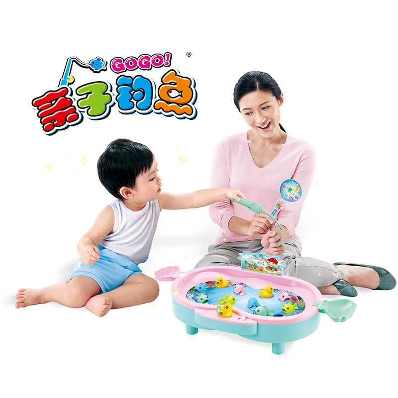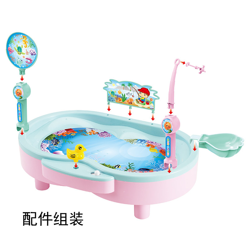 Children's electric rotating can add water fishing plate toy baby puzzle early education desktop game music fishing plate