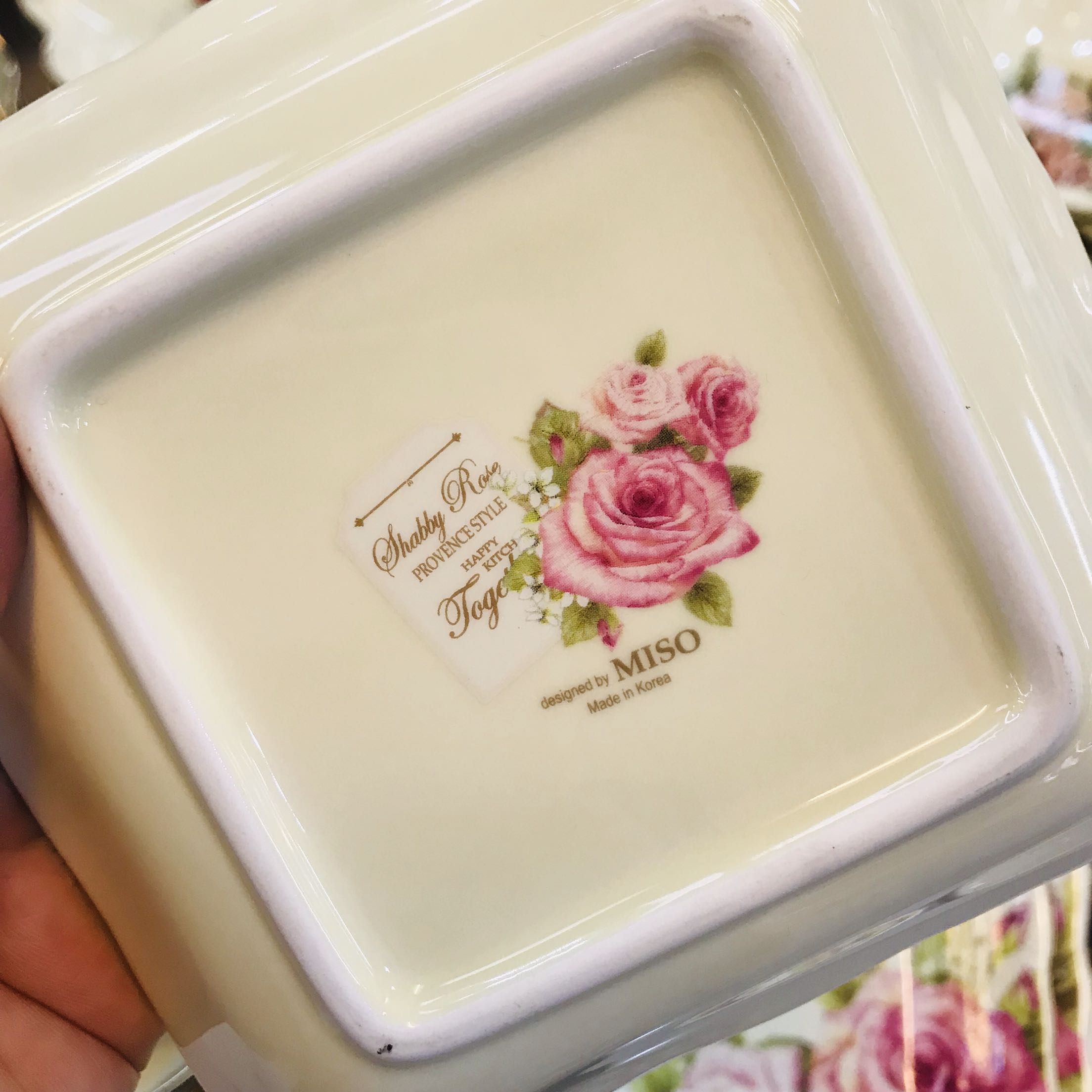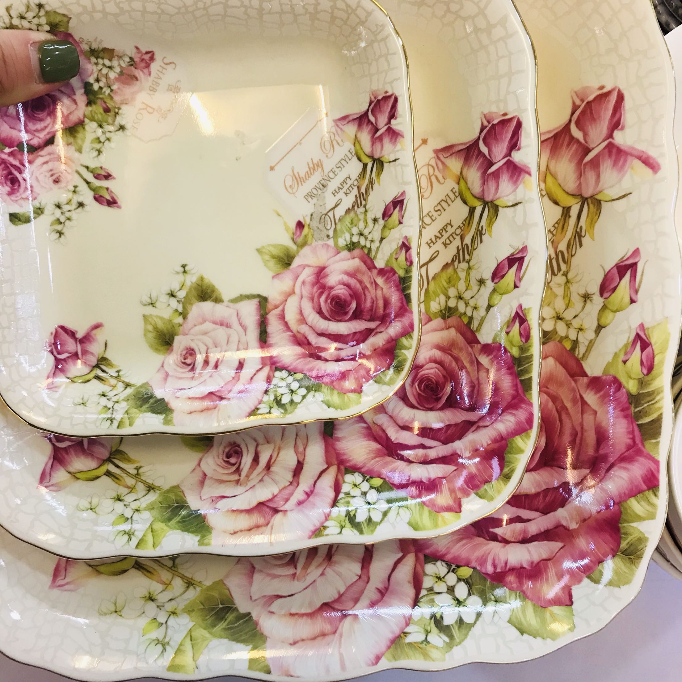 South Korea Original Imported 13k Gold Side Rose Ceramic Square Pan Deep Pan Tray Shallow Dish Four Corner Ceramic Dish
