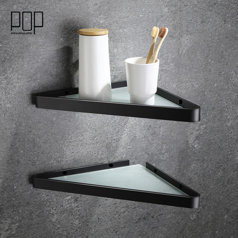 POP bathroom perforated space aluminum bathroom shelf Double-layer bathroom shelf Wall-mounted bathroom triangle basket