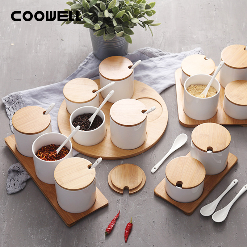 COOWELL Ceramic Seasoning Jars Kitchen for stock Gourmet Chicken Essence Chicken Essence box Seasoning Jar Suit