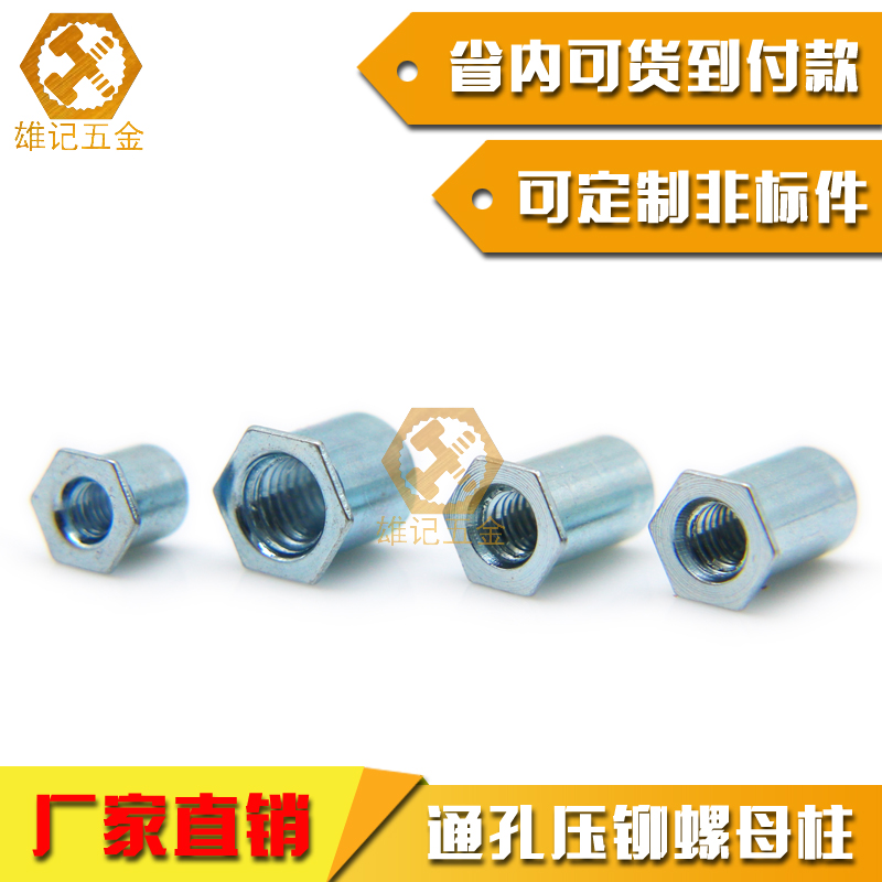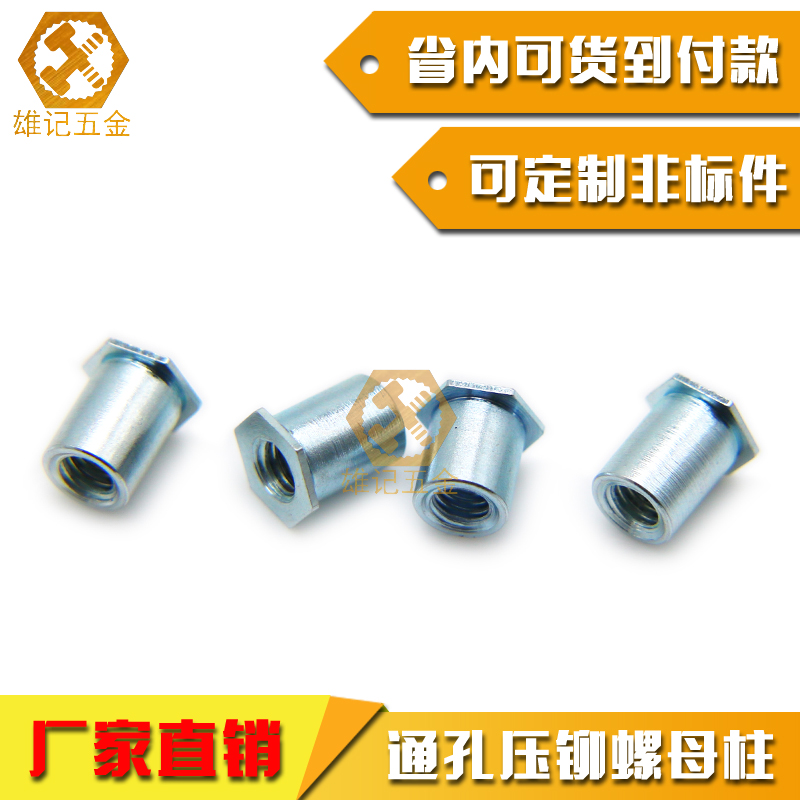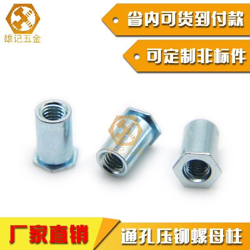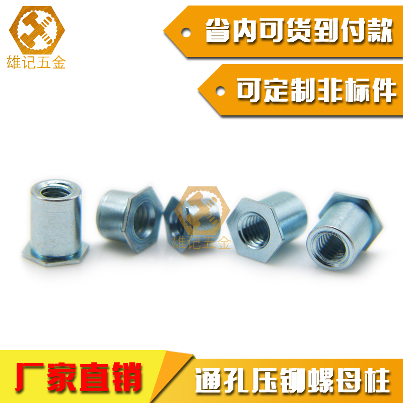 SO-M4*4-12 bottom hole 6 0 through hole riveting stud Environmental protection blue zinc carbon steel riveting nut column