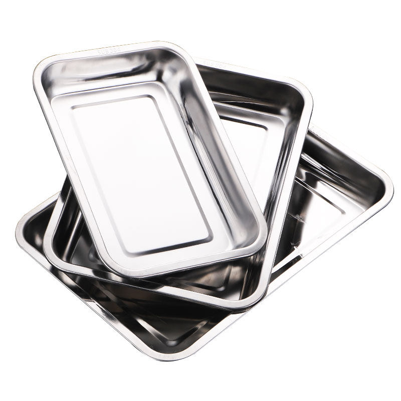 304 Stainless Steel Plate Kitchen Home Plate Rectangular Barbecue Plate Small Canteen Dining Room Nursery Tray Steaming Dinner Plate
