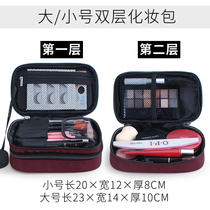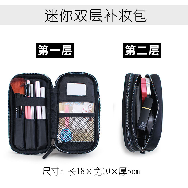 Waterproof Nylon Cloth Double Layer Small Number Portable Makeup Bag Woman Makeup makeup containing bag Mini business trip Travel Wash Bag Men