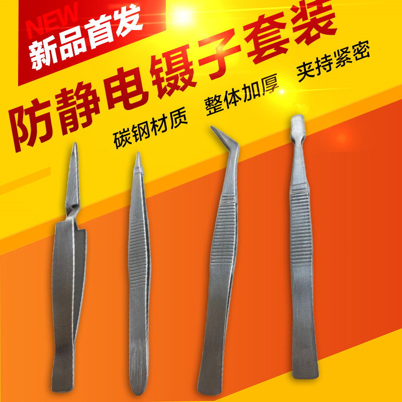Carbon tweezers one stainless steel tweezers one flat head stainless steel tweezers suit (6 pieces)