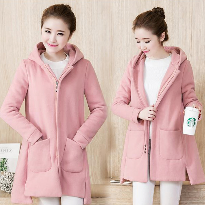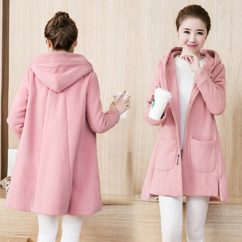 Pregnant women's coat women's autumn and winter clothes 2021 New loose woolen coat plus velvet maternity wear winter cotton coat