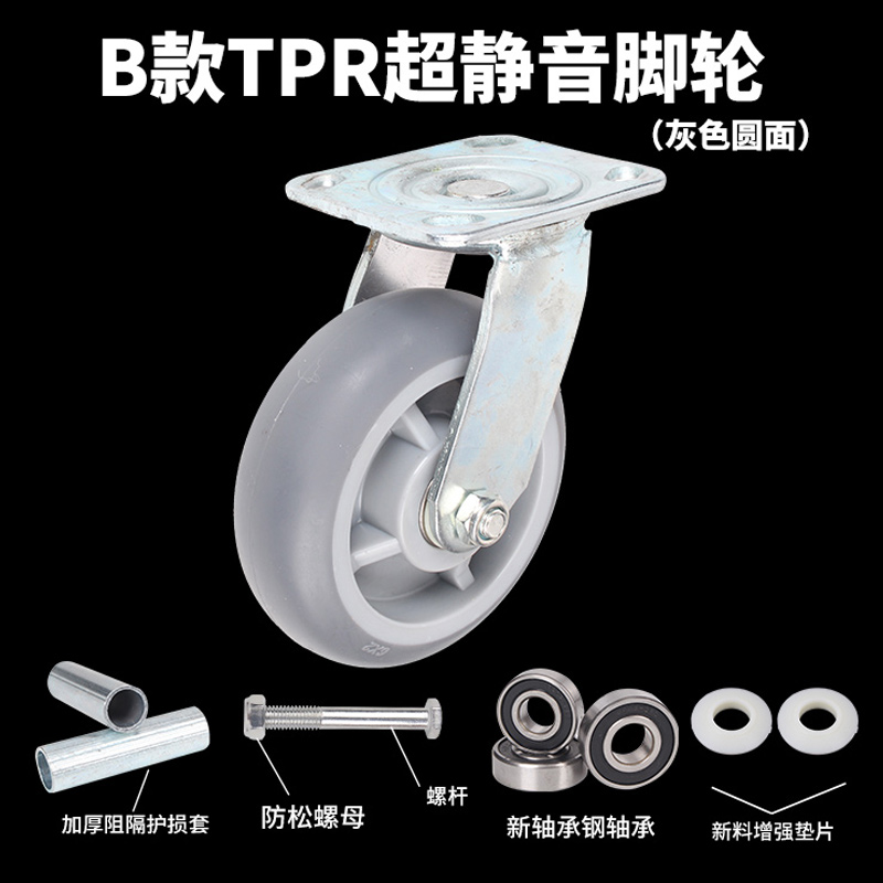 Ultra-quiet caster TPR artificial rubber wheel wheel brake wheel steering industrial caster ultra-silent wheel