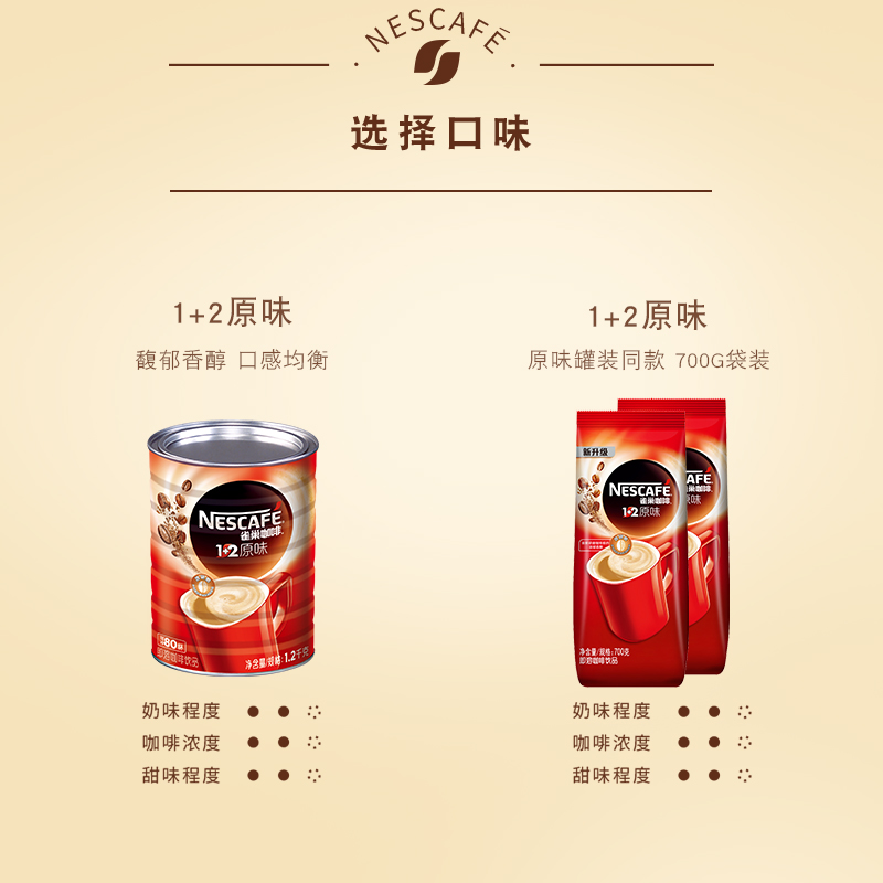 1 2 Original flavor coffee canned 1 2kg 1 2 Original flavor bag 150g bag*8 bags(economic refill) 1 2 Original flavor bag 700g bag*2 bags(refill