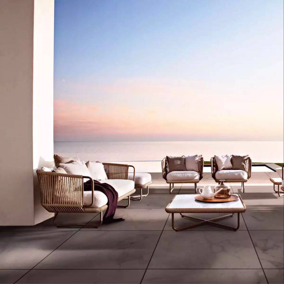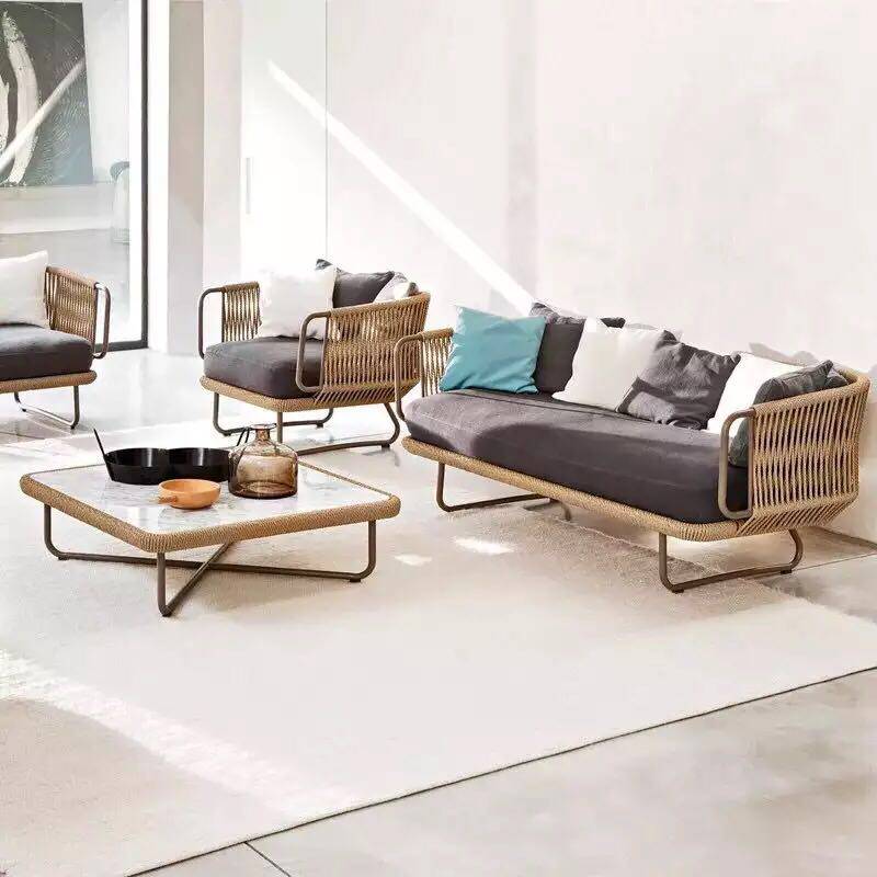 Outdoor leisure rattan sofa model house garden courtyard balcony rattan sofa Nordic rattan chair sofa combination simple - Taobao