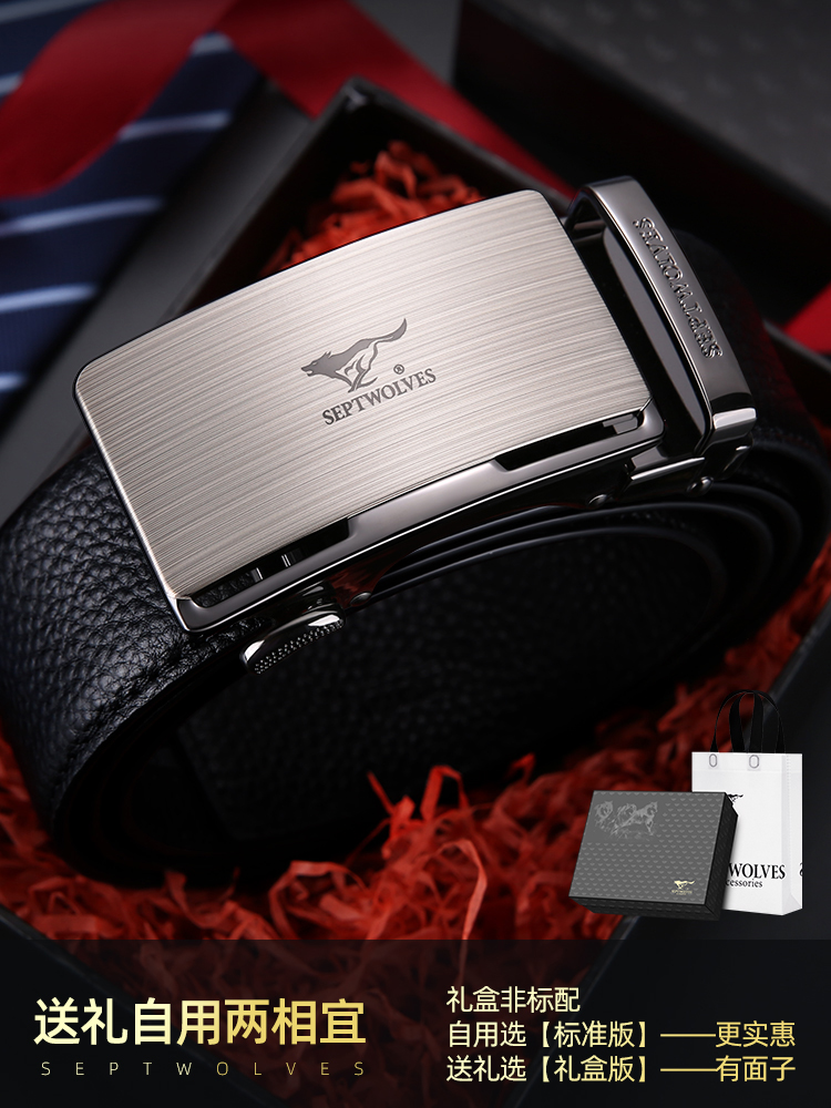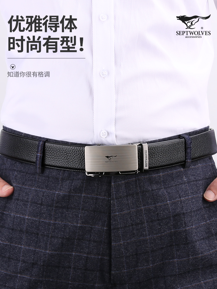 Septwolves men's leather belt with automatic buckle head layer pure cowhide 2022 new middle-aged men's belt