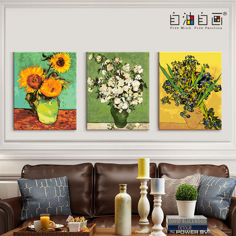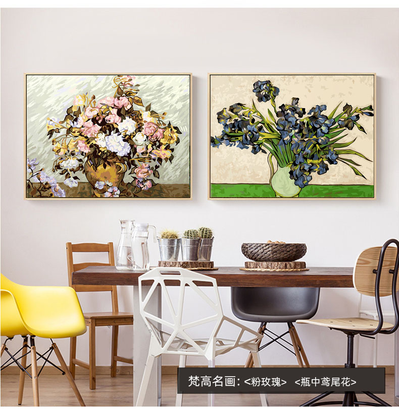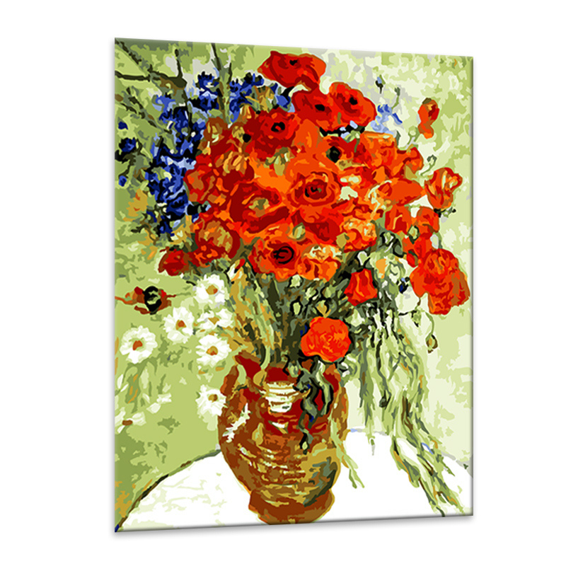 Self-oil painting Digital oil painting Flowers diy handmade coloring Living room Dining oil painting Van Gogh Poppies and daisies