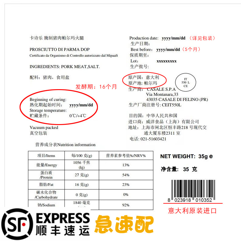 Italian ham Parmesan sliced imported pure meat flakes PAMA fermented authentic air-dried ready-to-eat raw meat