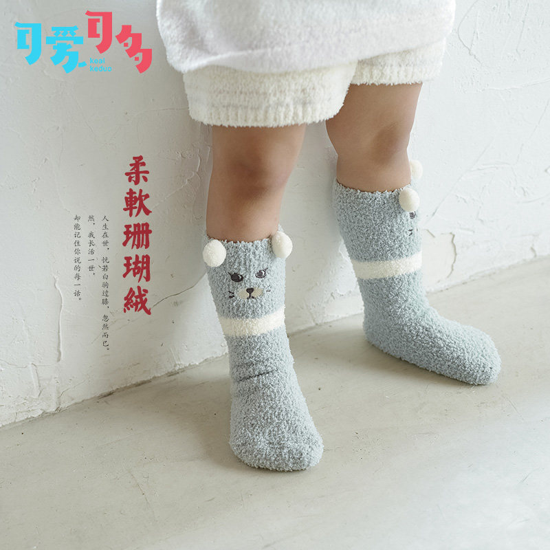 Children Socks Autumn Winter Non-slip Floor Socks Female Cute Coral Suede Baby Thickened Warm Home Parenting Socks Adult-Taobao