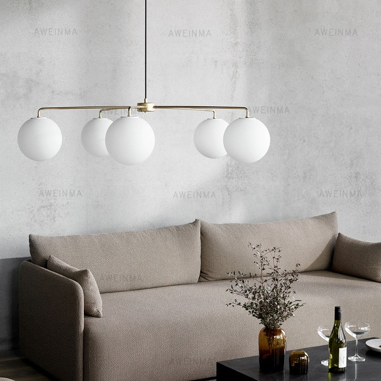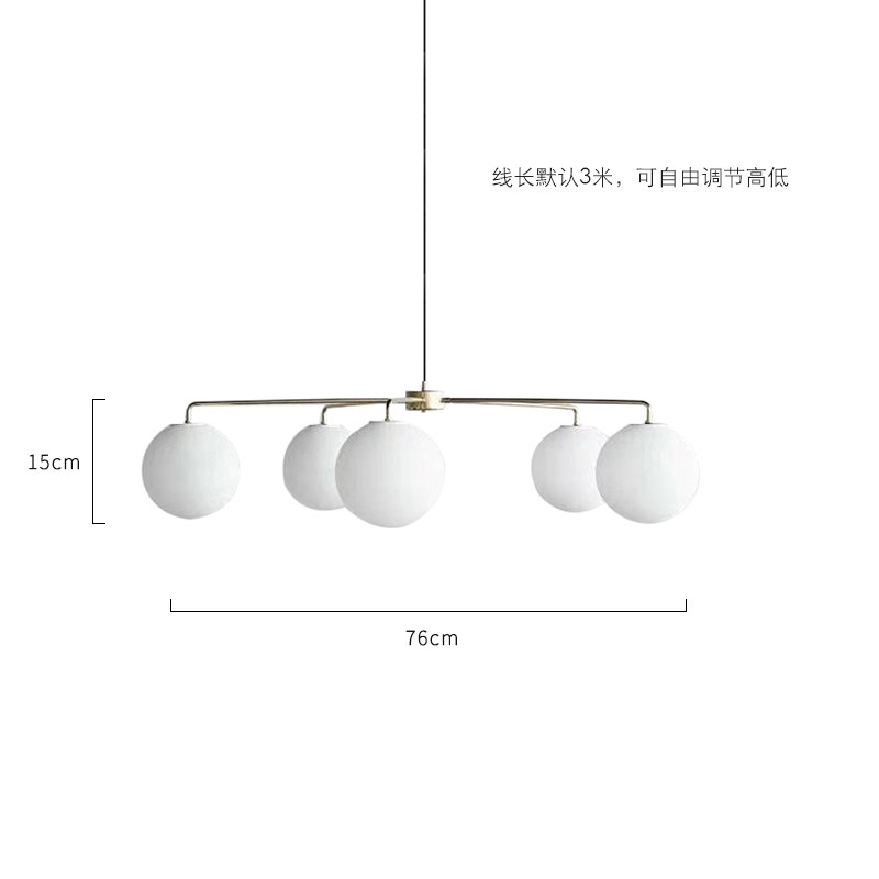 American country brass color minimalist living room bedroom 5-head chandelier metal retro frosted glass chandelier