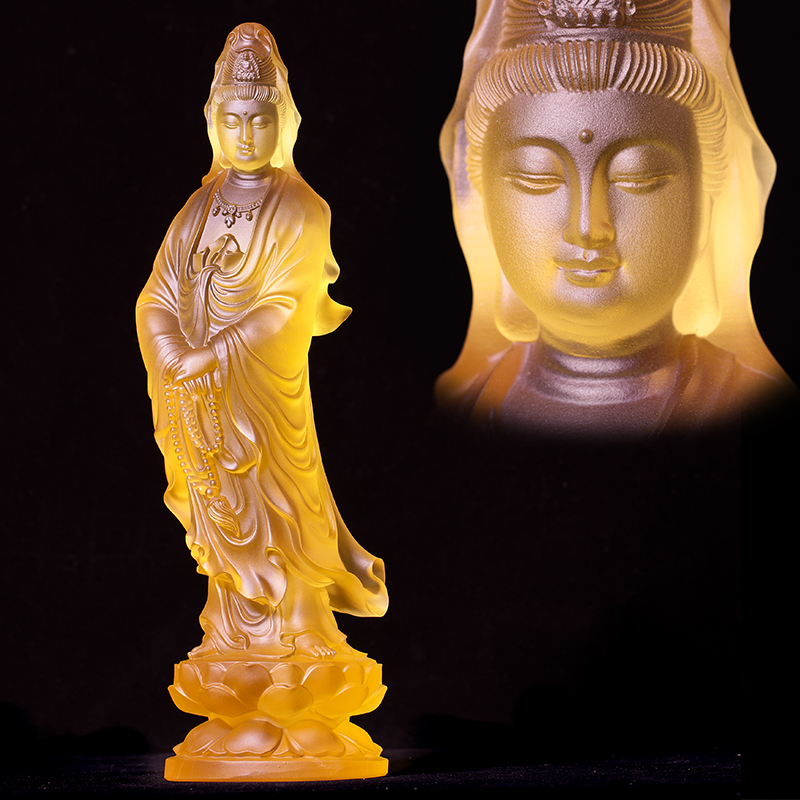 Glazed Guanyin Buddha statue Guanzizai Buddha hall decoration home worship temple ornaments Nanhai Guanyin Bodhisattva